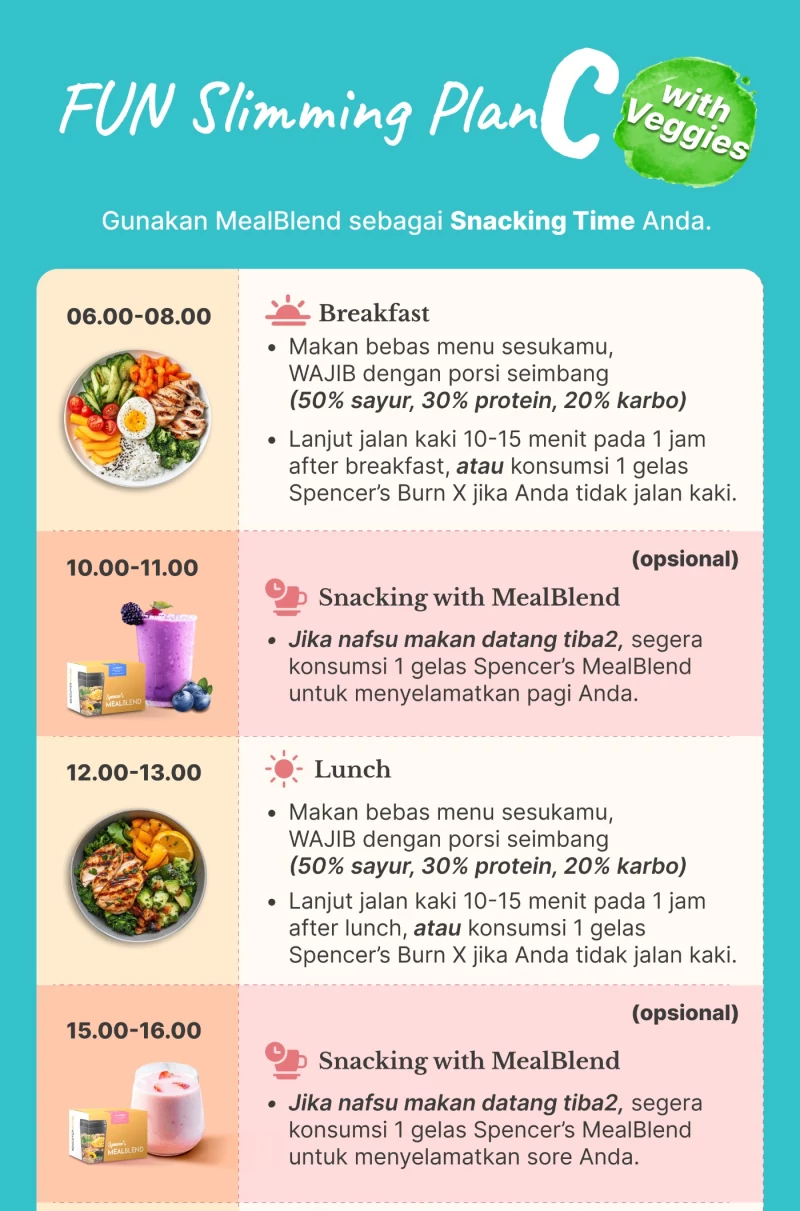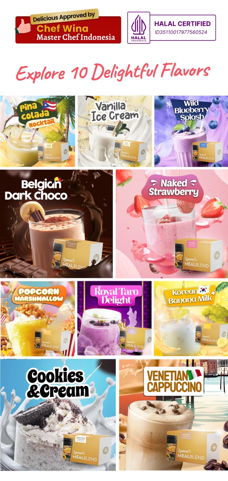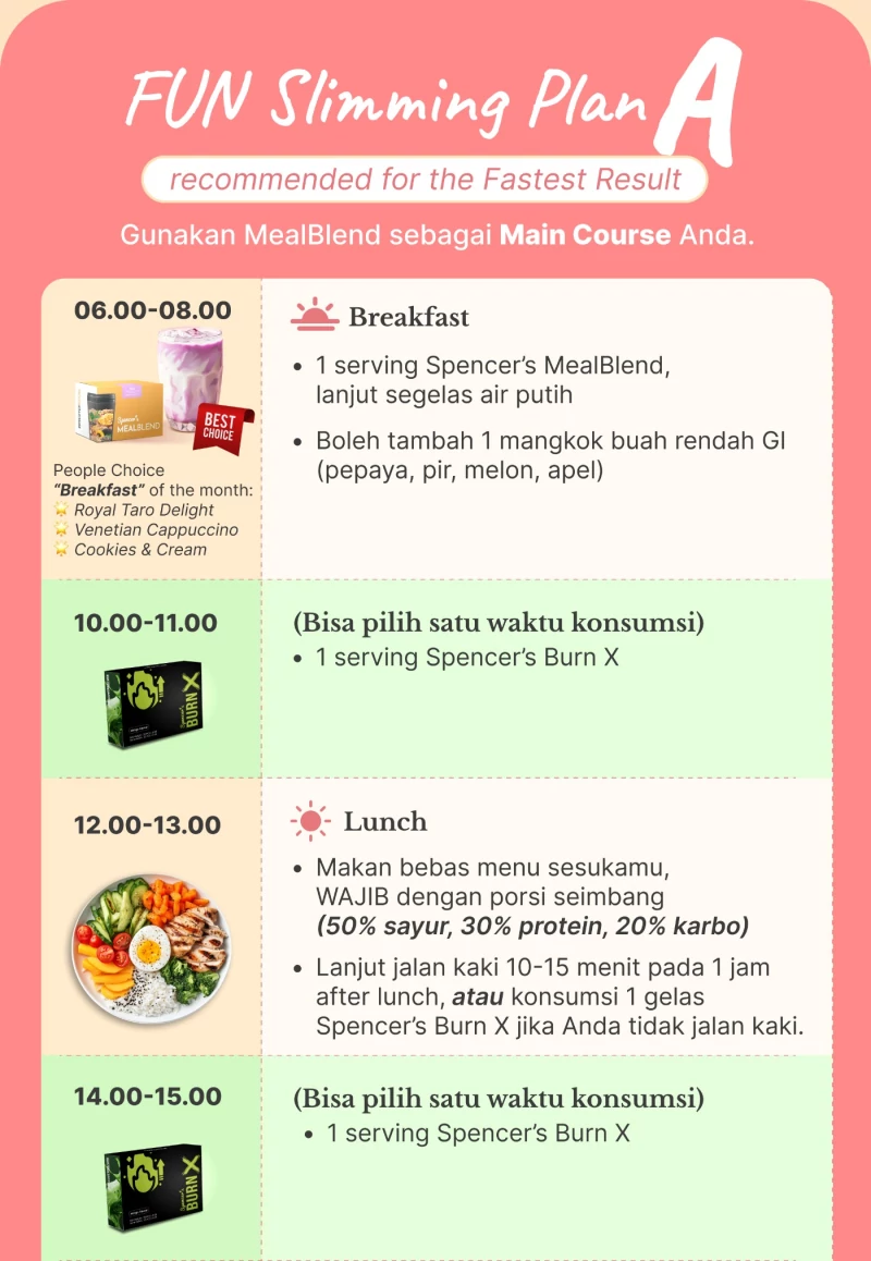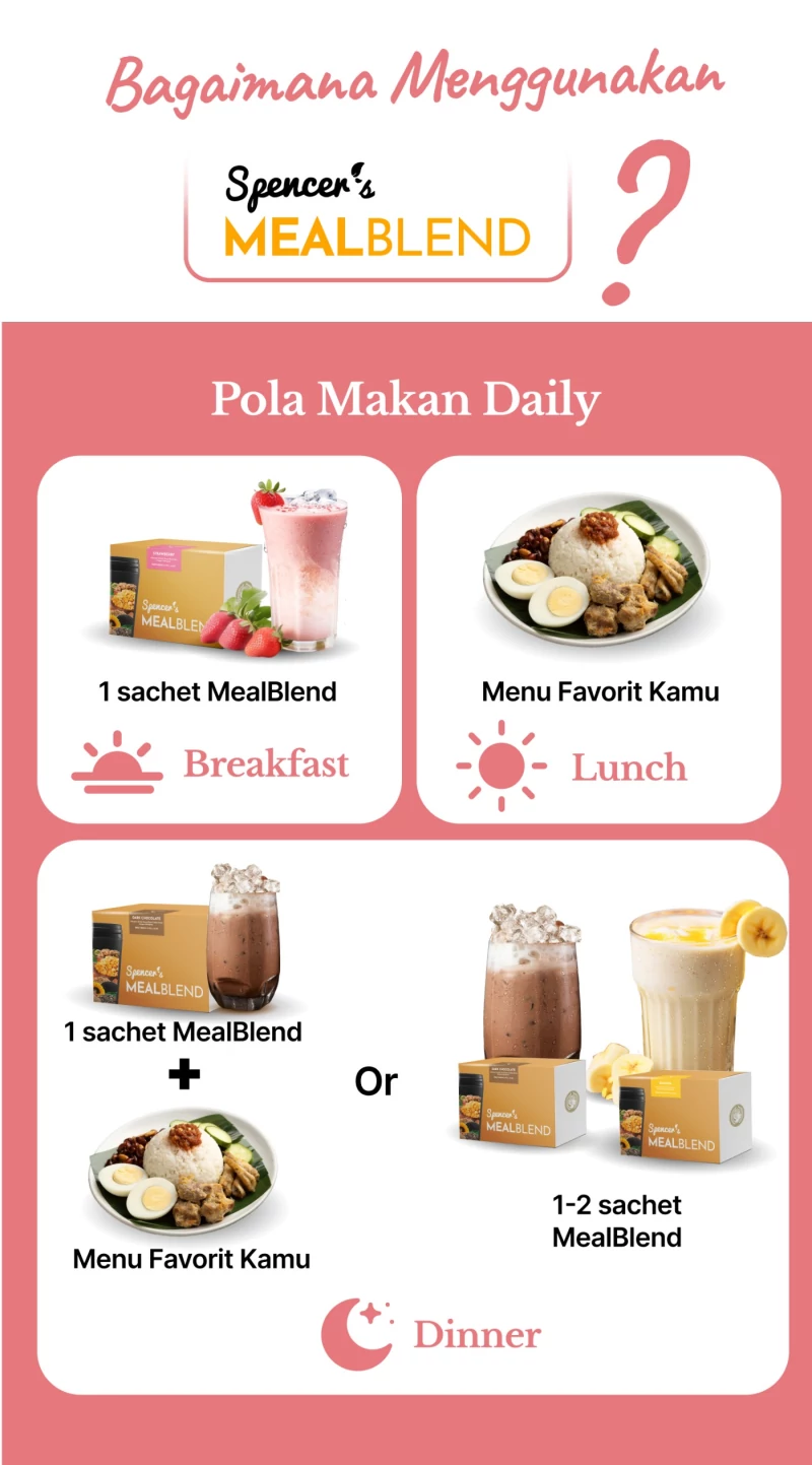 Spencer's MealBlend adalah Resep Nutrisi Alami & Ilmiah yang bekerja Mengecilkan Lingkar Tubuh Anda dan memiliki kandungan nutrisi makro yang bisa mengurangi atau menggantikan 1 kali porsi makan mu.