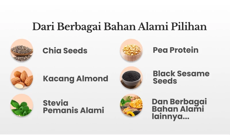 Kaya micro nutrients dari biji-bijian (Sesame, Quinoa, Flax Seed, Sun Flower, Soy, Almond, Pumpkin seeds 100% Vegan Friendly dan Lactose Free.