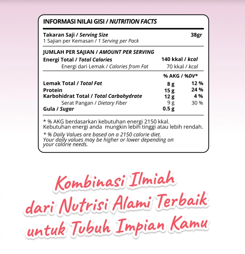 • 15gr Protein bersumber dari Pea (Setara 1 porsi ikan salmon)